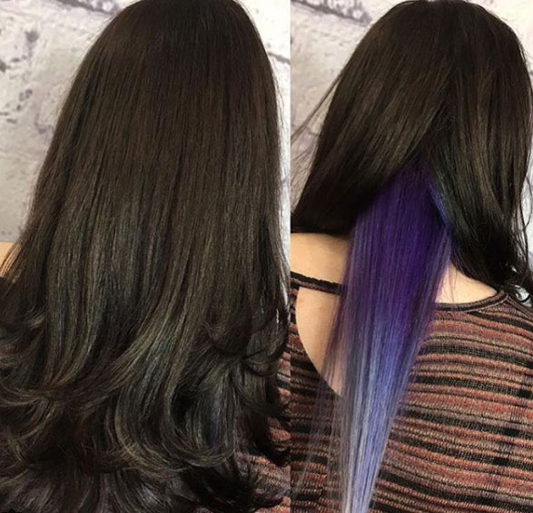 Talk to your Voodou colour technician about the look you want us to create. It goes by various names – hidden colour, hidden rainbow (if you want multiple colours added), secret colour, underlights or a hidden panel.